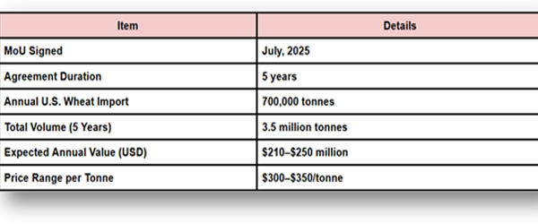 In Bangladesh, business executives and analysts have greeted the wheat agreement with cautious optimism. Based on Bangladesh Import Export Trade Analysis by Import Globals, Bakeries and producers of processed foods will benefit from a more consistent supply of high-protein wheat, according to flour millers. Meanwhile, the apparel sector is keeping a careful eye on the deal's result in the hopes that it would help Washington soften its position on the proposed tariffs.