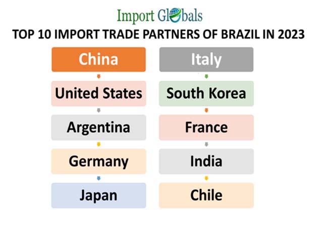 8. France – As per the France Export Data, the valuation of Brazil's imports in 2023 – 7 billion US dollars.