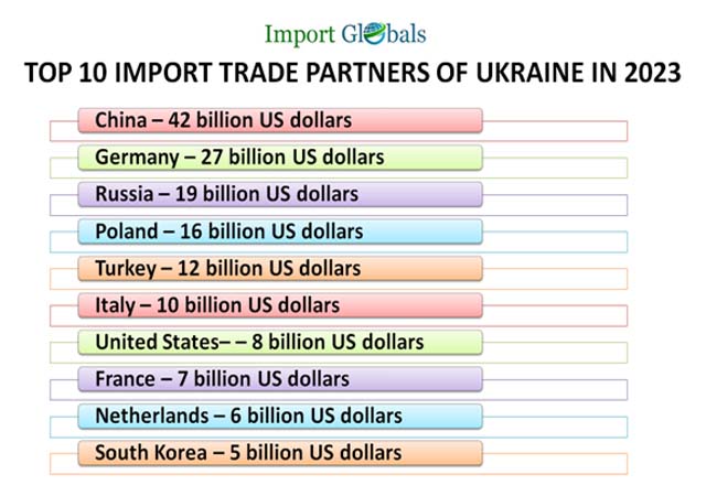 1. China – As per the China Export Data, the valuation of Ukraine imports in 2023 – 42 billion US dollars.