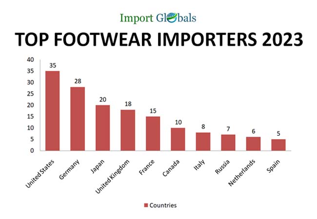 • United States – According to the USA Import Data, the valuation of footwear imports in 2023 – 35 billion US dollars.