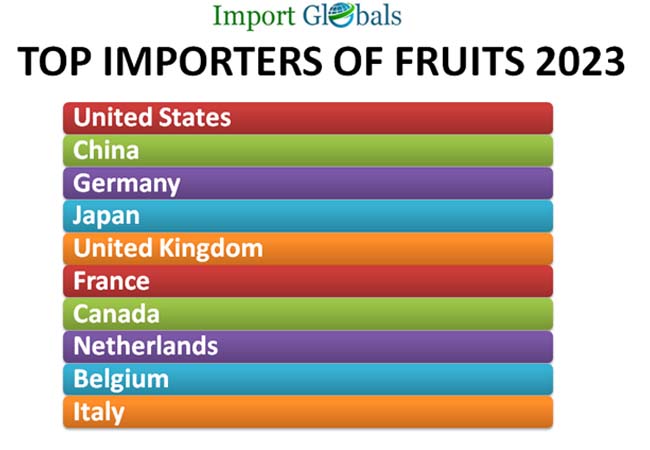 The beneficial nature of fruits promotes the majority of the people in the world demand for higher imports for their domestic needs. As per the Global Fruit Import Data, the top import trader of fruits in 2023 with its trade values are discussed below,