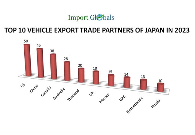 Ans. At Import Globals, you can get a detailed trade analysis of Japan's vehicle exports in 2023 with values.