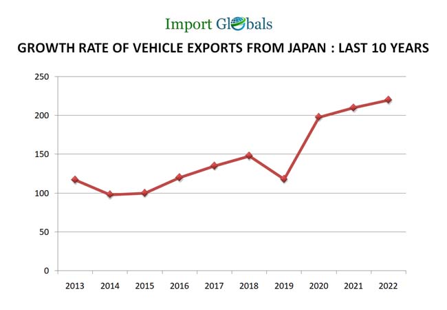 Japan Vehicle Export Trade Value of 2022 – 220 billion US dollars