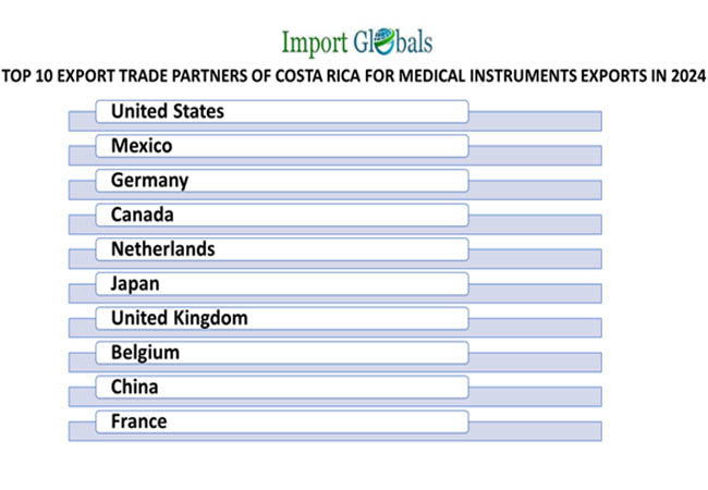 Ans. The United States is the top medical instruments export trade partner of Costa Rica in 2024.