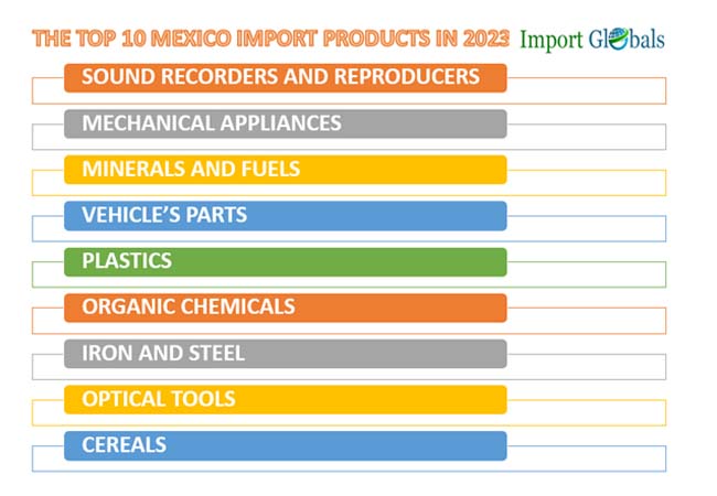 Ans. Mexico Top importing products are Sound Recorders and Mechanical Appliances.