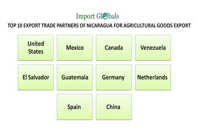 • China – As per the China Import Data, export trade value of agricultural goods from Nicaragua in 2023 – 224 million US dollars.