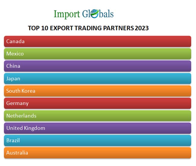 • Australia – Australia in the mainland of the Australian continent captures the tenth top position of the export trading partners of North American countries. The total export trade value of the products exported from North America to Australia is accounted as 40 billion US dollars.