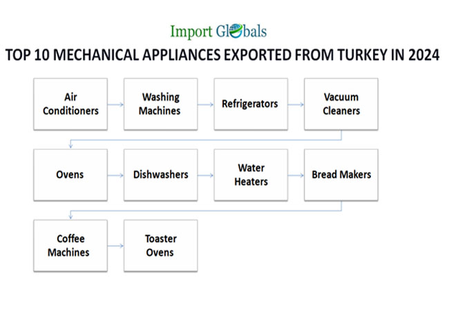 Ans. Air Conditioners are the top exported mechanical appliances of Turkey in 2024.