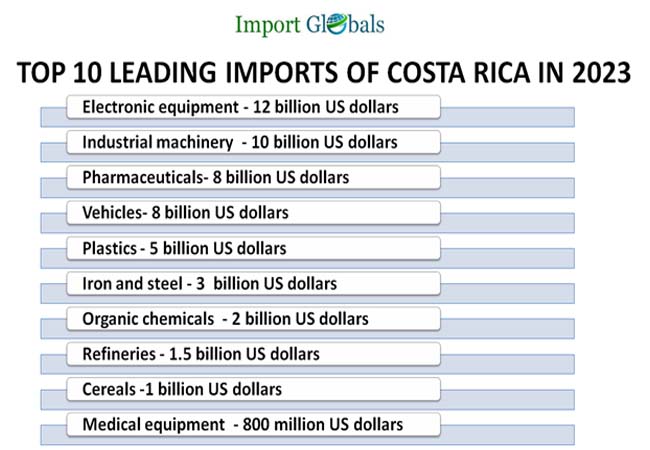 Costa Rica a crucial player in the global import market has been recording a steady increase in its import product demands from the top trading countries across the globe due to its quality-equipped services. The country known for its stunning natural beauty and diverse culture has been importing a wide range of mineral fuels, textiles, and other domestic necessities to maintain a sustainable balance within the import and export trade rate for a positive outgrowth in the growing economy.